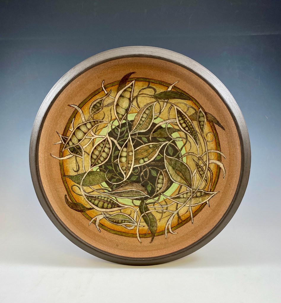 13 Inch Diameter, 1.5 inches high. The first piece in a new collection. We will be reviving our joint studio show, put on hold during the Pandemic, tentatively planned for June 2023 and featuring our new collaborations and new work. More details to come.
