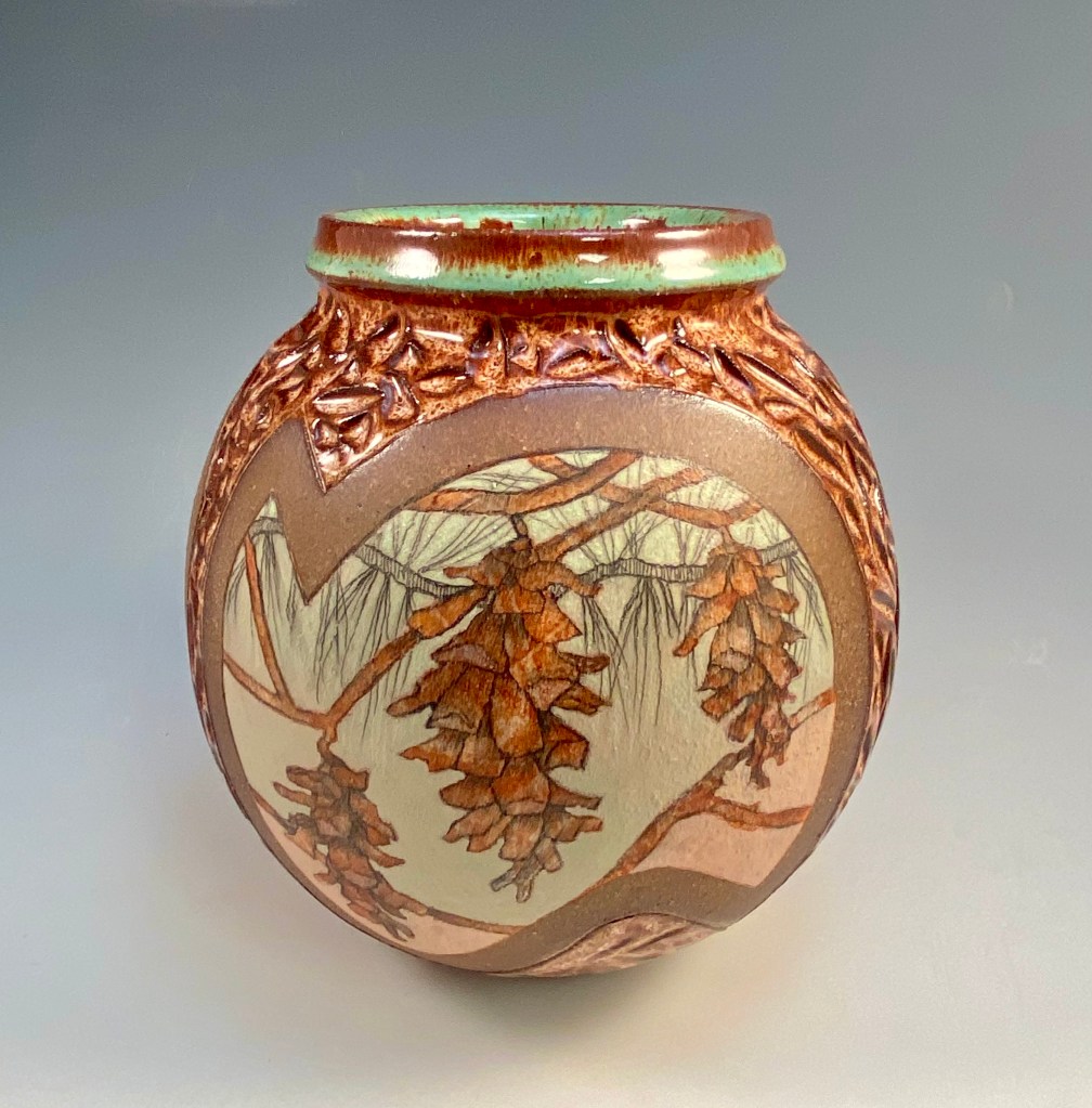 A new ongoing series of stoneware pots by Peder Hegland with post firing drawing, painting, impasto or collage by painter Judy Bergerson. More of Judy’s work can be found at http://www.judithbergerson.com